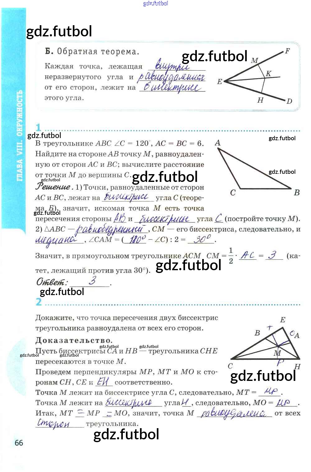 Готовые домашние задания по Геометрии за 8 класс Глазков Рабочая тетрадь УМК 2017 ФГОС - Глава VIII. Окружность стр. 66
