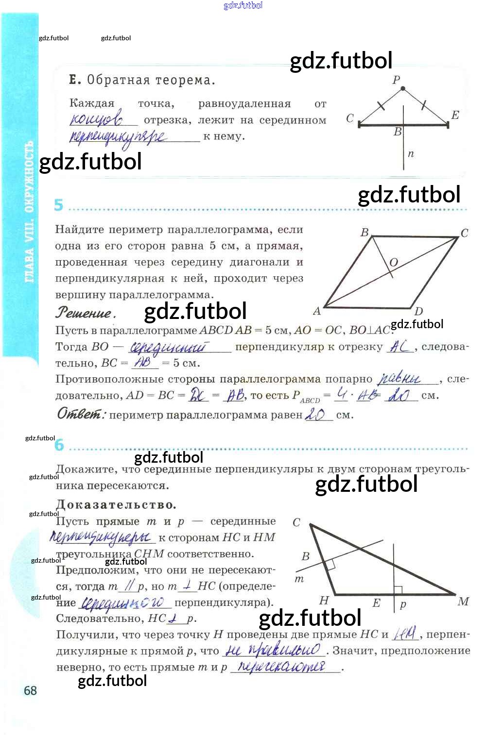 Готовые домашние задания по Геометрии за 8 класс Глазков Рабочая тетрадь УМК 2017 ФГОС - Глава VIII. Окружность стр. 68