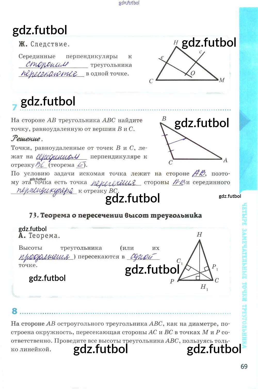 Готовые домашние задания по Геометрии за 8 класс Глазков Рабочая тетрадь УМК 2017 ФГОС - Глава VIII. Окружность стр. 69