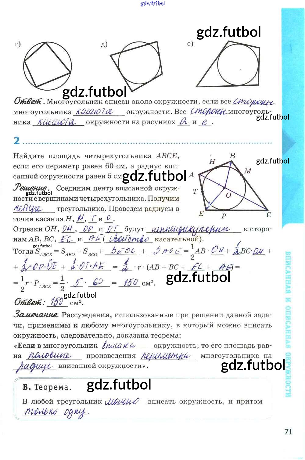 Готовые домашние задания по Геометрии за 8 класс Глазков Рабочая тетрадь УМК 2017 ФГОС - Глава VIII. Окружность стр. 71