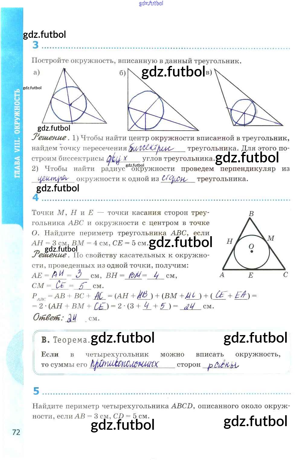 Готовые домашние задания по Геометрии за 8 класс Глазков Рабочая тетрадь УМК 2017 ФГОС - Глава VIII. Окружность стр. 72