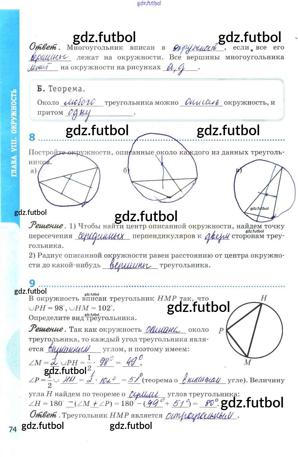 Готовые домашние задания по Геометрии за 8 класс Глазков Рабочая тетрадь УМК 2017 ФГОС - Глава VIII. Окружность стр. 74