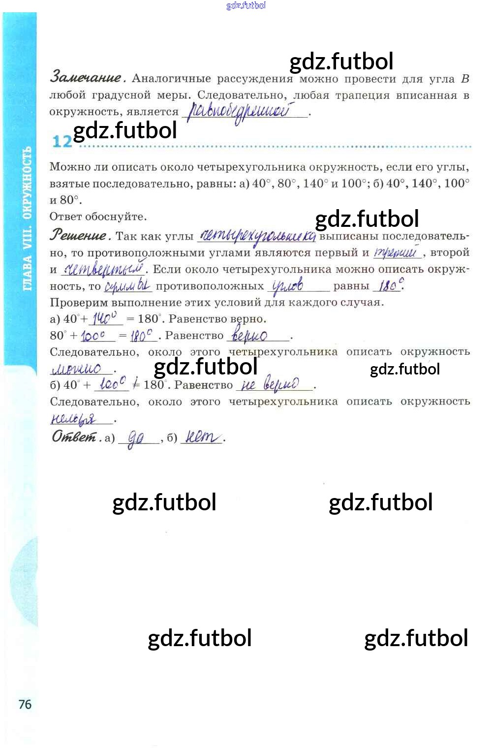 Готовые домашние задания по Геометрии за 8 класс Глазков Рабочая тетрадь УМК 2017 ФГОС - Глава VIII. Окружность стр. 76