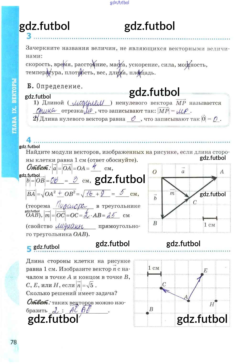 Готовые домашние задания по Геометрии за 8 класс Глазков Рабочая тетрадь УМК 2017 ФГОС - Глава IX. Векторы стр. 78