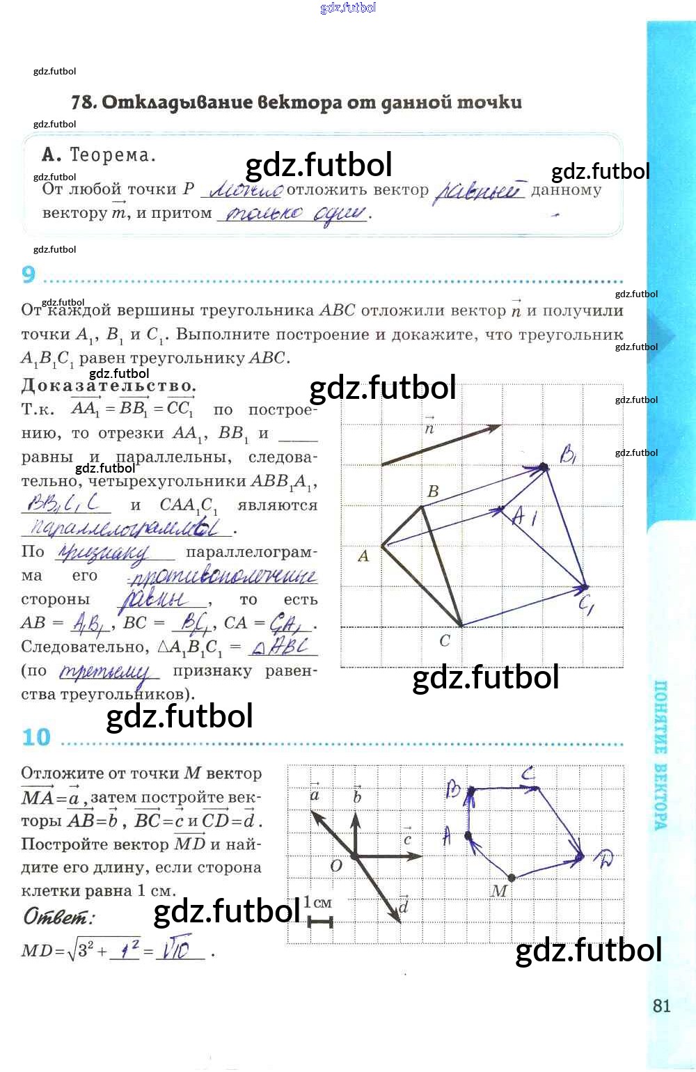 Готовые домашние задания по Геометрии за 8 класс Глазков Рабочая тетрадь УМК 2017 ФГОС - Глава IX. Векторы стр. 81