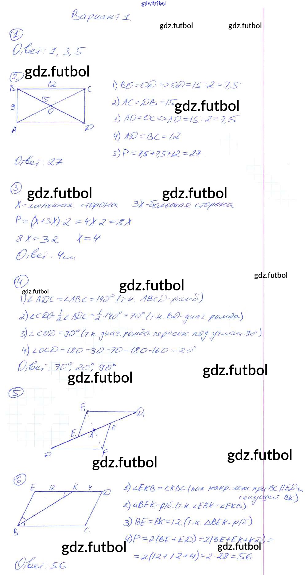 Готовые домашние задания по Геометрии за 8 класс Мельникова Контрольные работы УМК 2013 ФГОС - КР-1. Четырехугольники Вариант №1