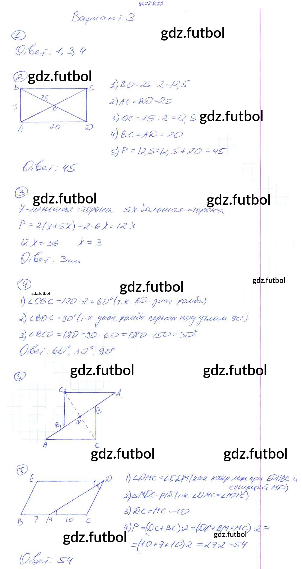 Готовые домашние задания по Геометрии за 8 класс Мельникова Контрольные работы УМК 2013 ФГОС - КР-1. Четырехугольники Вариант №3