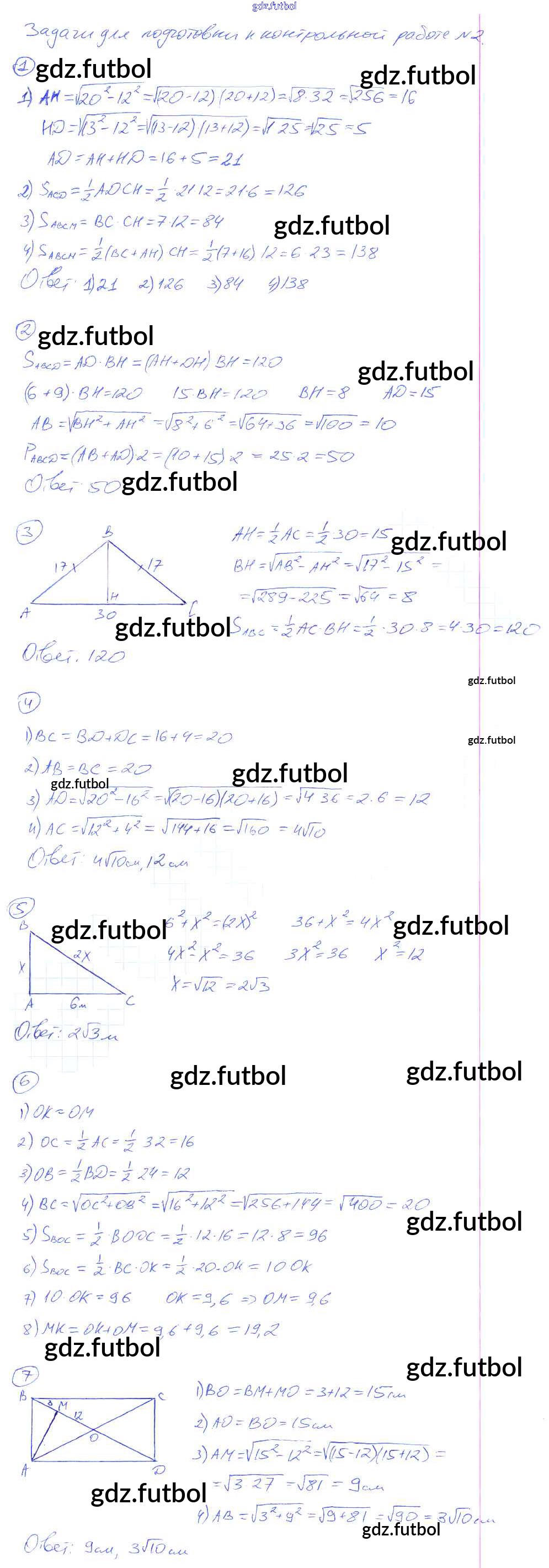 Готовые домашние задания по Геометрии за 8 класс Мельникова Контрольные работы УМК 2013 ФГОС - КР-2. Теорема Пифагора. Площадь Задачи для подготовки к контрольной работе