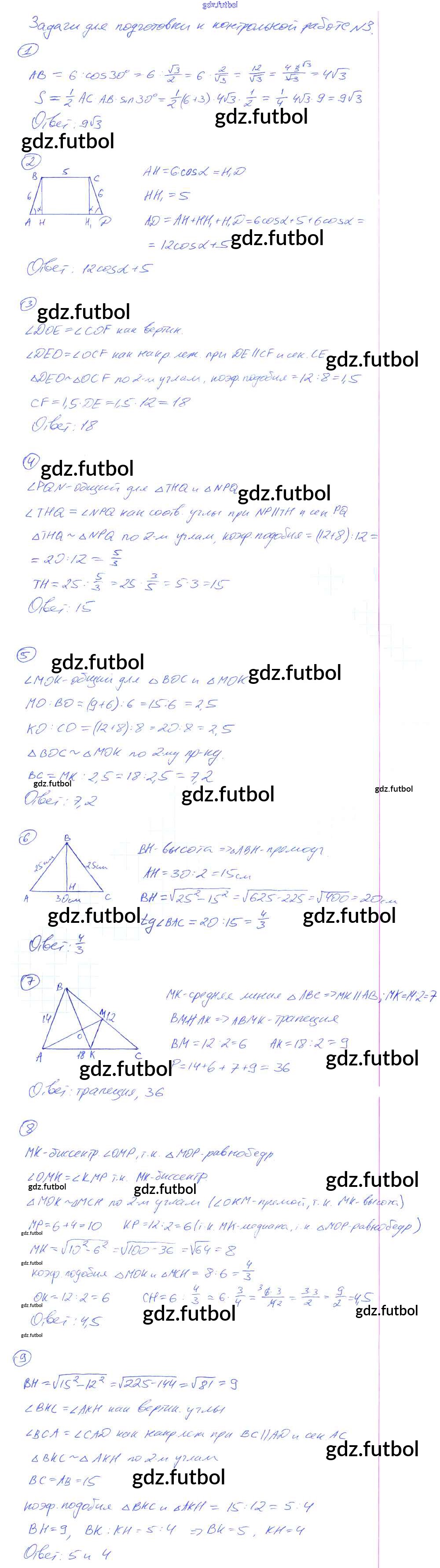 Готовые домашние задания по Геометрии за 8 класс Мельникова Контрольные работы УМК 2013 ФГОС - КР-3. Подобные треугольники Задачи для подготовки к контрольной работе