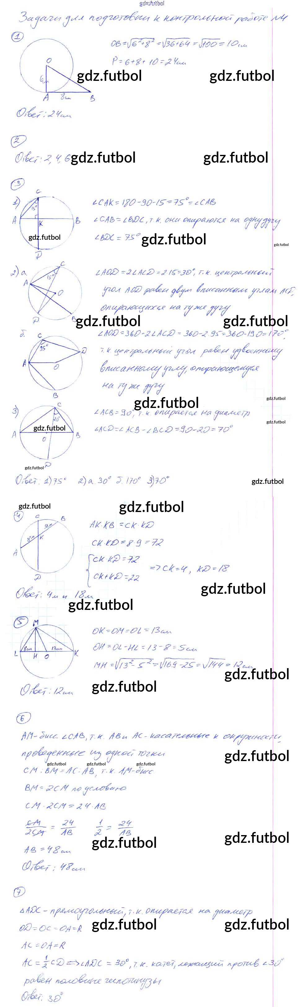 Готовые домашние задания по Геометрии за 8 класс Мельникова Контрольные работы УМК 2013 ФГОС - КР-4. Окружность Задачи для подготовки к контрольной работе