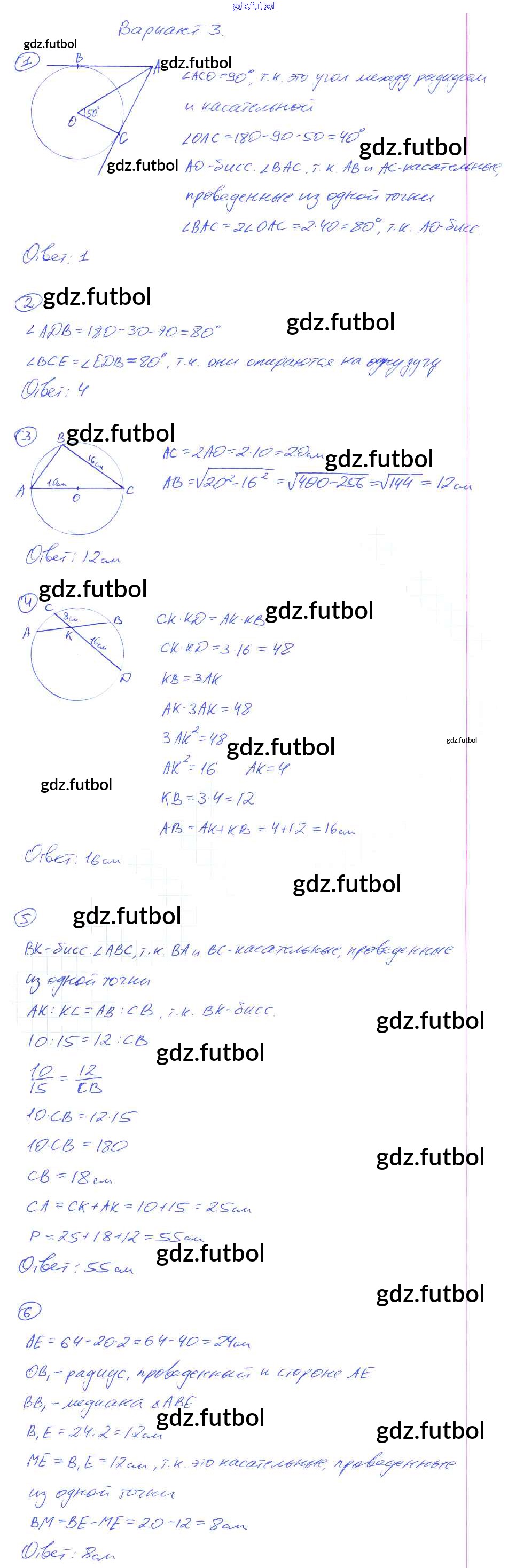 Готовые домашние задания по Геометрии за 8 класс Мельникова Контрольные работы УМК 2013 ФГОС - КР-4. Окружность Вариант №3