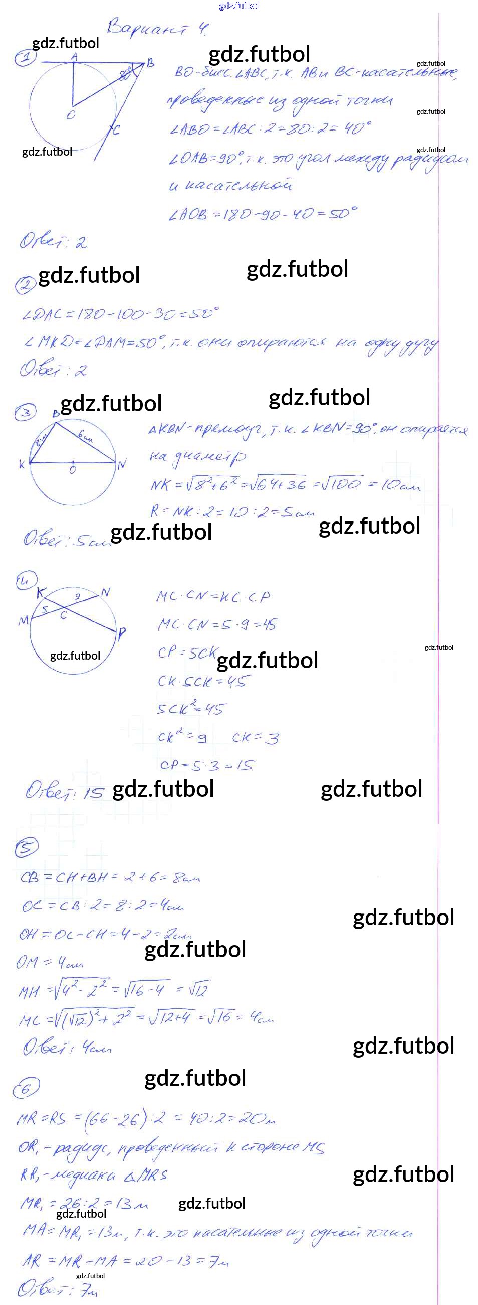 Готовые домашние задания по Геометрии за 8 класс Мельникова Контрольные работы УМК 2013 ФГОС - КР-4. Окружность Вариант №4