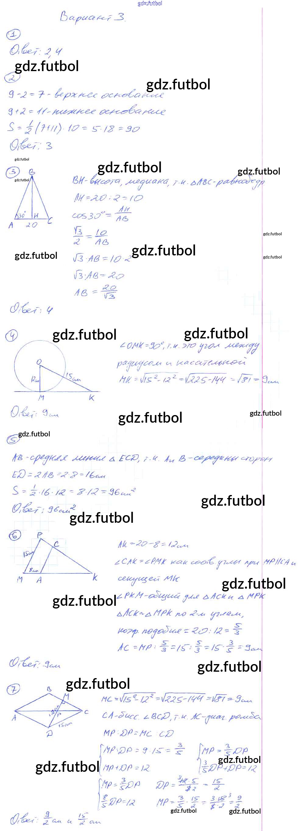 Готовые домашние задания по Геометрии за 8 класс Мельникова Контрольные работы УМК 2013 ФГОС - КР-5. Итоговая Вариант №3