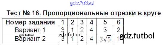 Готовые домашние задания по Геометрии за 8 класс Рязановский Контрольно-измерительные материалы (КИМ) 2014 ФГОС - Тесты Тест №16. Пропорциональные отрезки в круге