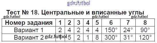 Готовые домашние задания по Геометрии за 8 класс Рязановский Контрольно-измерительные материалы (КИМ) 2014 ФГОС - Тесты Тест №18. Центральные и вписанные углы