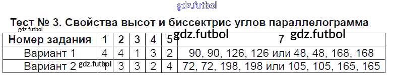 Готовые домашние задания по Геометрии за 8 класс Рязановский Контрольно-измерительные материалы (КИМ) 2014 ФГОС - Тесты Тест №3. Свойства высот и биссектрис углов параллелограмма