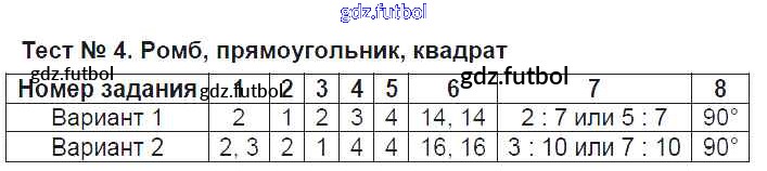 Готовые домашние задания по Геометрии за 8 класс Рязановский Контрольно-измерительные материалы (КИМ) 2014 ФГОС - Тесты Тест №4. Ромб, прямоугольник, квадрат