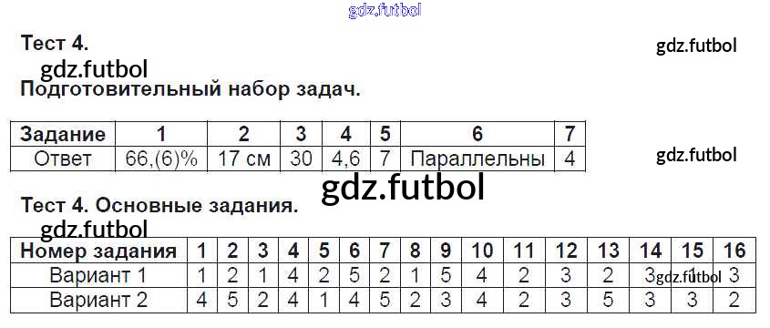 Готовые решения задач (ГДЗ) по Геометрии восьмой класс Звавич, Потоскуев Тесты УМК 2013 ФГОС - Тесты Тест №4 доступны для различных учебных материалов. У нас вы сможете найти авторские решения для всех пособий, предназначенных для школьников. Не секрет, что в настоящее время многие школьники прибегают к использованию готовых решебников, ведь они содержат подробные ответы для каждого упражнения, представленного в учебнике.