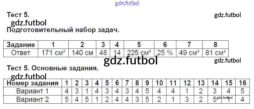 Готовые решения задач (ГДЗ) по Геометрии восьмой класс Звавич, Потоскуев Тесты УМК 2013 ФГОС - Тесты Тест №5 доступны для различных учебных материалов. У нас вы сможете найти авторские решения для всех пособий, предназначенных для школьников. Не секрет, что в настоящее время многие школьники прибегают к использованию готовых решебников, ведь они содержат подробные ответы для каждого упражнения, представленного в учебнике.