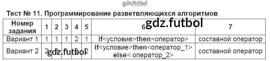 Готовые домашние задания по Информатике за 8 класс Масленикова Контрольно-измерительные материалы (КИМ) 2017 ФГОС - Тесты Тест №11. Программирование разветвляющихся алгоритмов