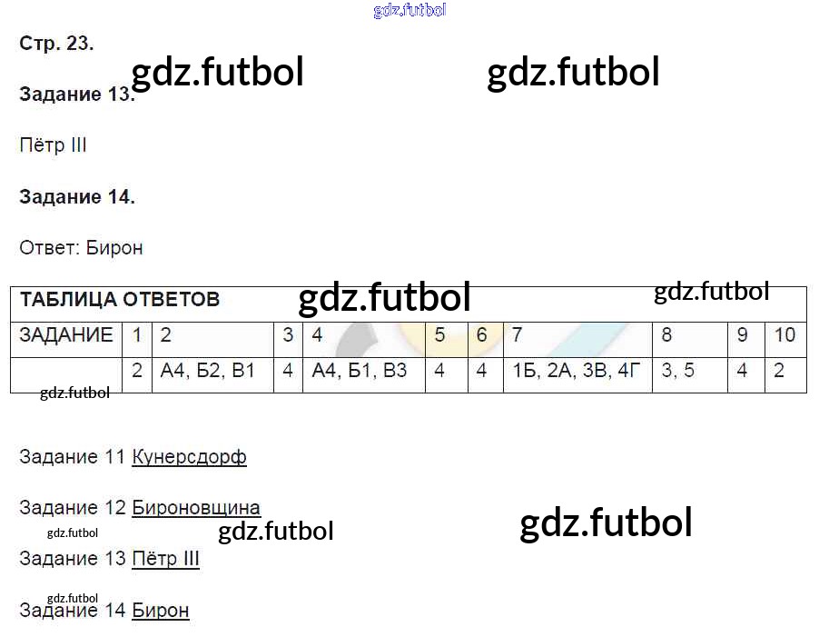 Готовые решения задач (ГДЗ) по Истории восьмой класс Артасов Контрольные работы УМК 2016 ФГОС - Страницы 23 доступны для различных учебных материалов. У нас вы сможете найти авторские решения для всех пособий, предназначенных для школьников. Не секрет, что в настоящее время многие школьники прибегают к использованию готовых решебников, ведь они содержат подробные ответы для каждого упражнения, представленного в учебнике.