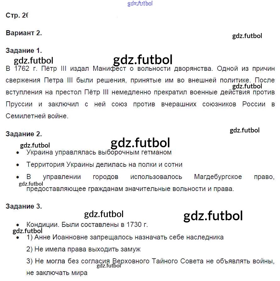 Готовые решения задач (ГДЗ) по Истории восьмой класс Артасов Контрольные работы УМК 2016 ФГОС - Страницы 26 доступны для различных учебных материалов. У нас вы сможете найти авторские решения для всех пособий, предназначенных для школьников. Не секрет, что в настоящее время многие школьники прибегают к использованию готовых решебников, ведь они содержат подробные ответы для каждого упражнения, представленного в учебнике.
