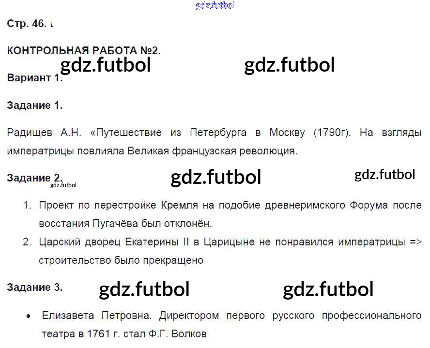 Готовые решения задач (ГДЗ) по Истории восьмой класс Артасов Контрольные работы УМК 2016 ФГОС - Страницы 46 доступны для различных учебных материалов. У нас вы сможете найти авторские решения для всех пособий, предназначенных для школьников. Не секрет, что в настоящее время многие школьники прибегают к использованию готовых решебников, ведь они содержат подробные ответы для каждого упражнения, представленного в учебнике.