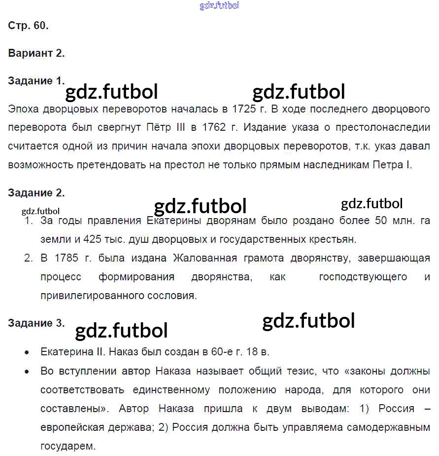 Готовые решения задач (ГДЗ) по Истории восьмой класс Артасов Контрольные работы УМК 2016 ФГОС - Страницы 60 доступны для различных учебных материалов. У нас вы сможете найти авторские решения для всех пособий, предназначенных для школьников. Не секрет, что в настоящее время многие школьники прибегают к использованию готовых решебников, ведь они содержат подробные ответы для каждого упражнения, представленного в учебнике.