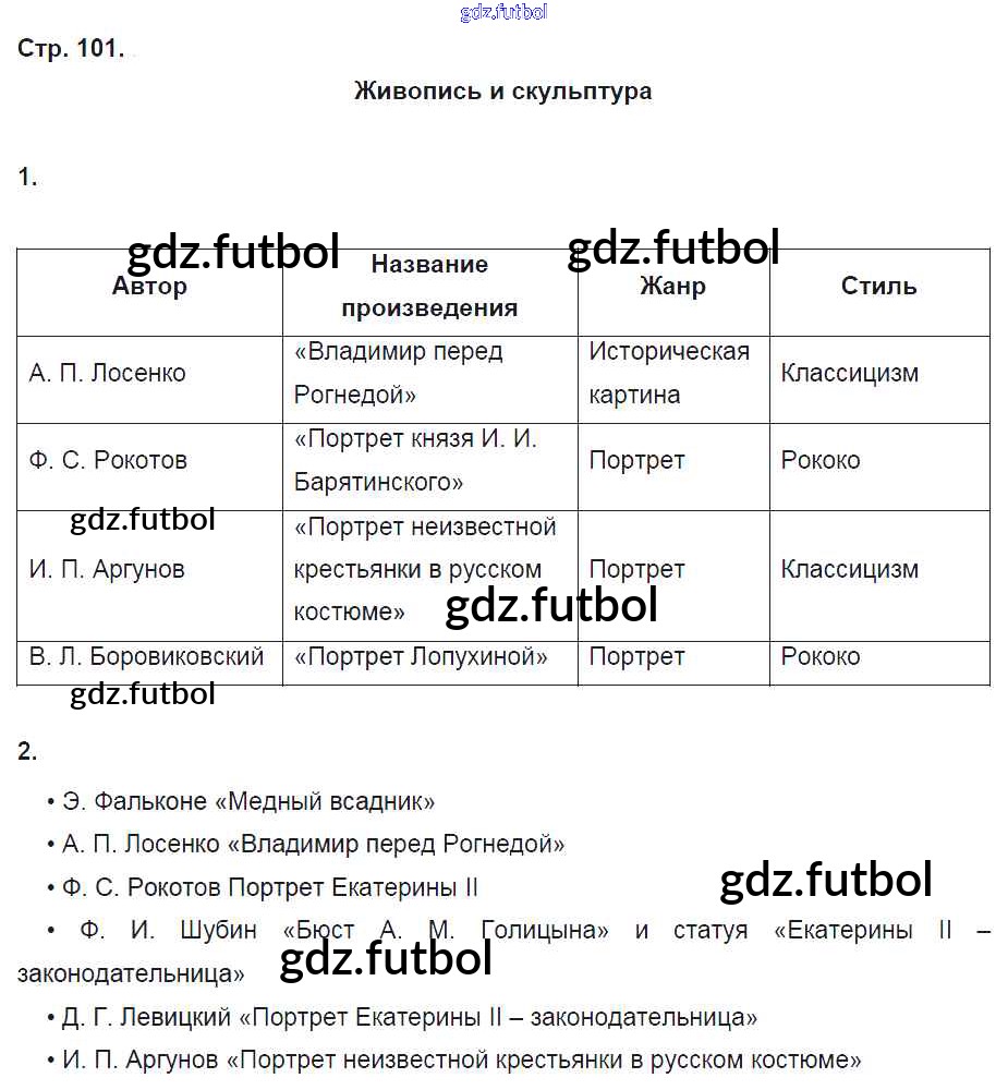 Готовые домашние задания по Истории за 8 класс Артасов Рабочая тетрадь УМК 2016 ФГОС - Страницы 101