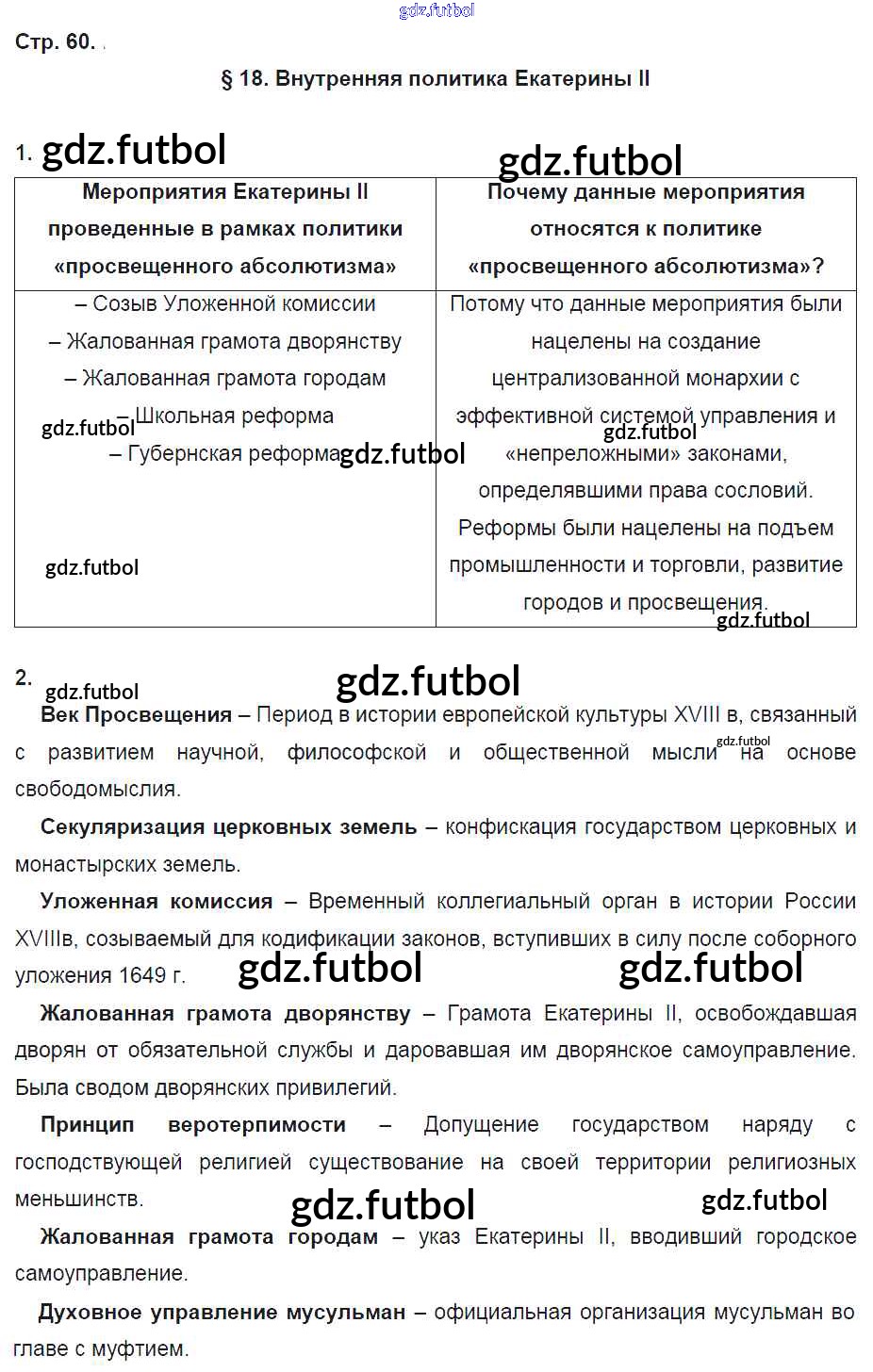 Готовые домашние задания по Истории за 8 класс Артасов Рабочая тетрадь УМК 2016 ФГОС - Страницы 60