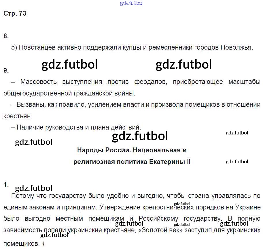 Готовые домашние задания по Истории за 8 класс Артасов Рабочая тетрадь УМК 2016 ФГОС - Страницы 73