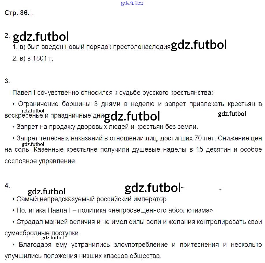 Готовые домашние задания по Истории за 8 класс Артасов Рабочая тетрадь УМК 2016 ФГОС - Страницы 86