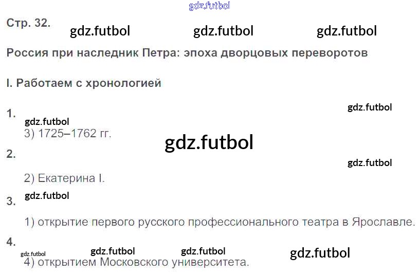 Готовые решения задач (ГДЗ) по Истории восьмой класс Гевуркова Рабочая тетрадь УМК 2018 ФГОС - Страницы 32 доступны для различных учебных материалов. У нас вы сможете найти авторские решения для всех пособий, предназначенных для школьников. Не секрет, что в настоящее время многие школьники прибегают к использованию готовых решебников, ведь они содержат подробные ответы для каждого упражнения, представленного в учебнике.
