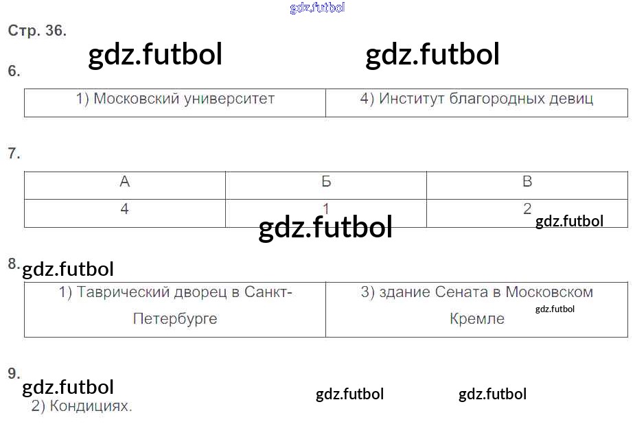 Готовые решения задач (ГДЗ) по Истории восьмой класс Гевуркова Рабочая тетрадь УМК 2018 ФГОС - Страницы 36 доступны для различных учебных материалов. У нас вы сможете найти авторские решения для всех пособий, предназначенных для школьников. Не секрет, что в настоящее время многие школьники прибегают к использованию готовых решебников, ведь они содержат подробные ответы для каждого упражнения, представленного в учебнике.