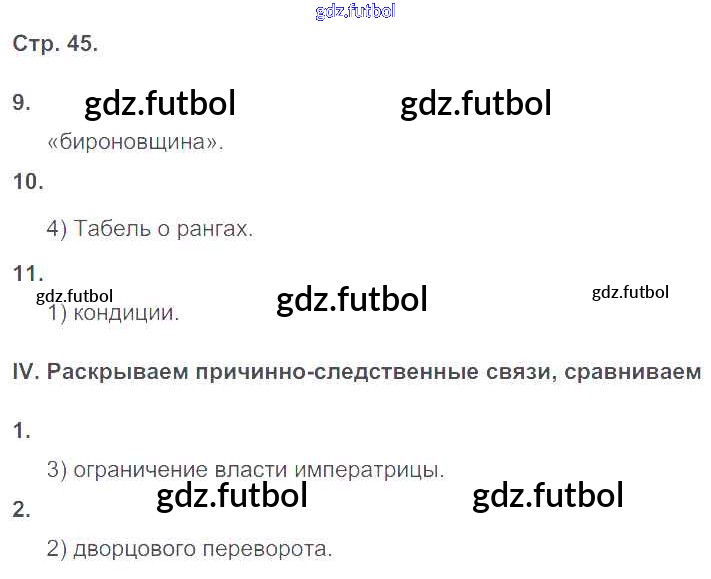Готовые решения задач (ГДЗ) по Истории восьмой класс Гевуркова Рабочая тетрадь УМК 2018 ФГОС - Страницы 45 доступны для различных учебных материалов. У нас вы сможете найти авторские решения для всех пособий, предназначенных для школьников. Не секрет, что в настоящее время многие школьники прибегают к использованию готовых решебников, ведь они содержат подробные ответы для каждого упражнения, представленного в учебнике.