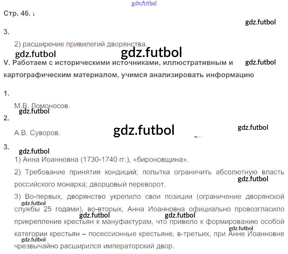 Готовые решения задач (ГДЗ) по Истории восьмой класс Гевуркова Рабочая тетрадь УМК 2018 ФГОС - Страницы 46 доступны для различных учебных материалов. У нас вы сможете найти авторские решения для всех пособий, предназначенных для школьников. Не секрет, что в настоящее время многие школьники прибегают к использованию готовых решебников, ведь они содержат подробные ответы для каждого упражнения, представленного в учебнике.