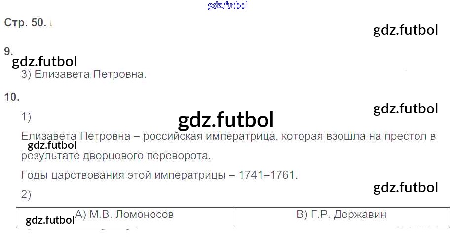 Готовые решения задач (ГДЗ) по Истории восьмой класс Гевуркова Рабочая тетрадь УМК 2018 ФГОС - Страницы 50 доступны для различных учебных материалов. У нас вы сможете найти авторские решения для всех пособий, предназначенных для школьников. Не секрет, что в настоящее время многие школьники прибегают к использованию готовых решебников, ведь они содержат подробные ответы для каждого упражнения, представленного в учебнике.