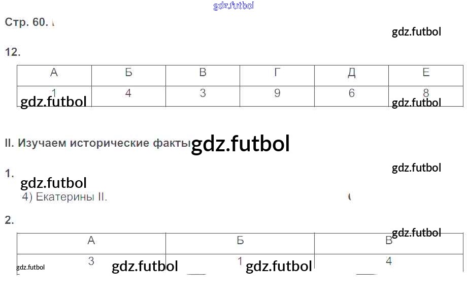 Готовые решения задач (ГДЗ) по Истории восьмой класс Гевуркова Рабочая тетрадь УМК 2018 ФГОС - Страницы 60 доступны для различных учебных материалов. У нас вы сможете найти авторские решения для всех пособий, предназначенных для школьников. Не секрет, что в настоящее время многие школьники прибегают к использованию готовых решебников, ведь они содержат подробные ответы для каждого упражнения, представленного в учебнике.