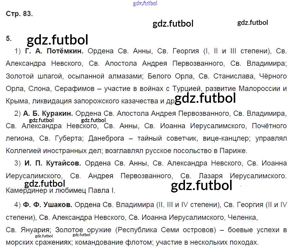 Готовые решения задач (ГДЗ) по Истории восьмой класс Симонова, Клоков Рабочая тетрадь УМК 2019 ФГОС - Страницы 83 доступны для различных учебных материалов. У нас вы сможете найти авторские решения для всех пособий, предназначенных для школьников. Не секрет, что в настоящее время многие школьники прибегают к использованию готовых решебников, ведь они содержат подробные ответы для каждого упражнения, представленного в учебнике.