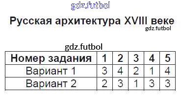 Готовые решения задач (ГДЗ) по Истории восьмой класс Воробьёва Тесты УМК 2017 ФГОС - Тесты Русская архитектура XVIII в. доступны для различных учебных материалов. У нас вы сможете найти авторские решения для всех пособий, предназначенных для школьников. Не секрет, что в настоящее время многие школьники прибегают к использованию готовых решебников, ведь они содержат подробные ответы для каждого упражнения, представленного в учебнике.