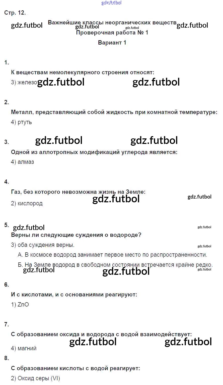 Готовые домашние задания по Химии за 8 класс Бобылева Тетрадь-экзаменатор Сферы 2016 ФГОС - Страницы 12