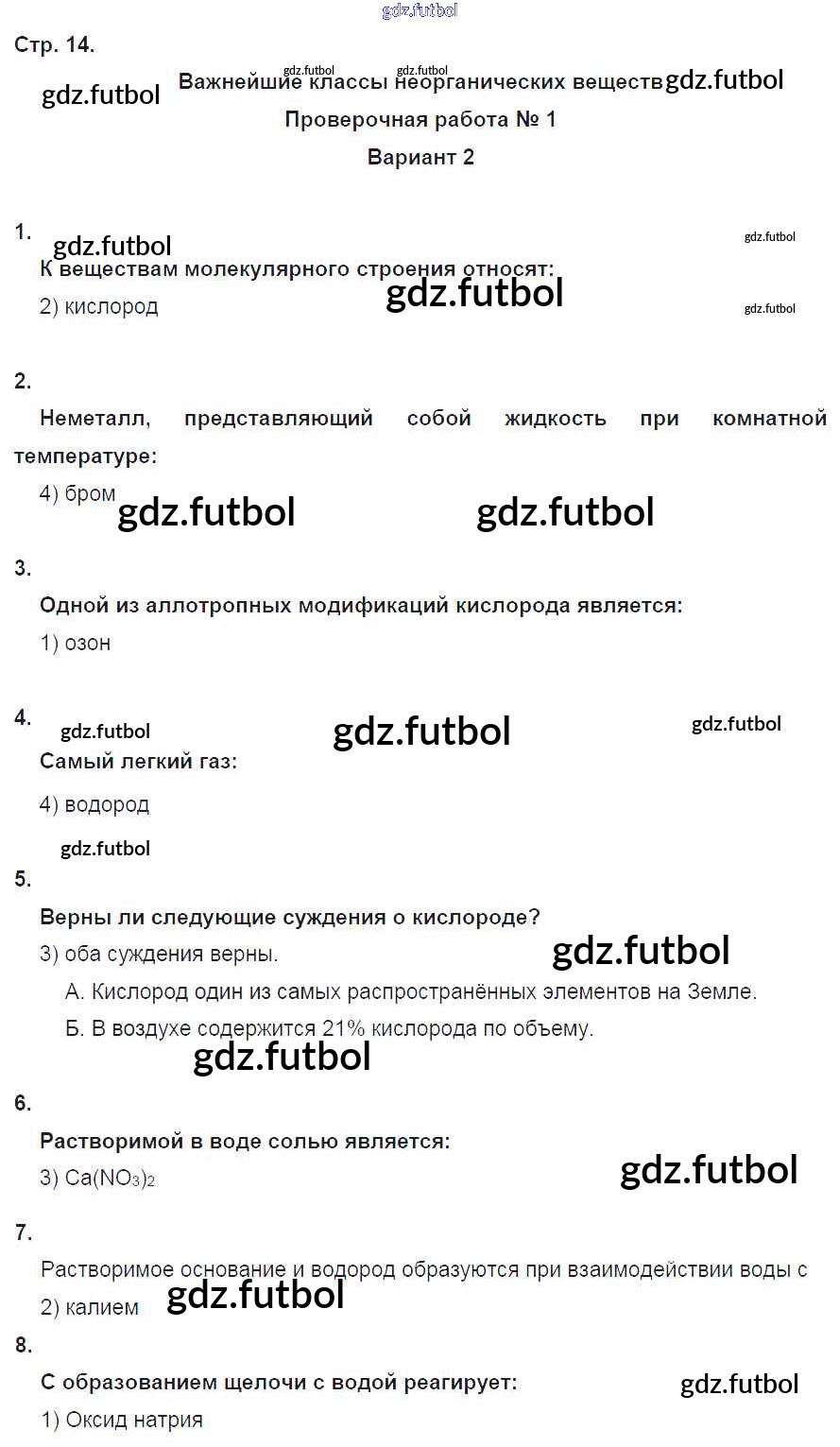 Готовые домашние задания по Химии за 8 класс Бобылева Тетрадь-экзаменатор Сферы 2016 ФГОС - Страницы 14