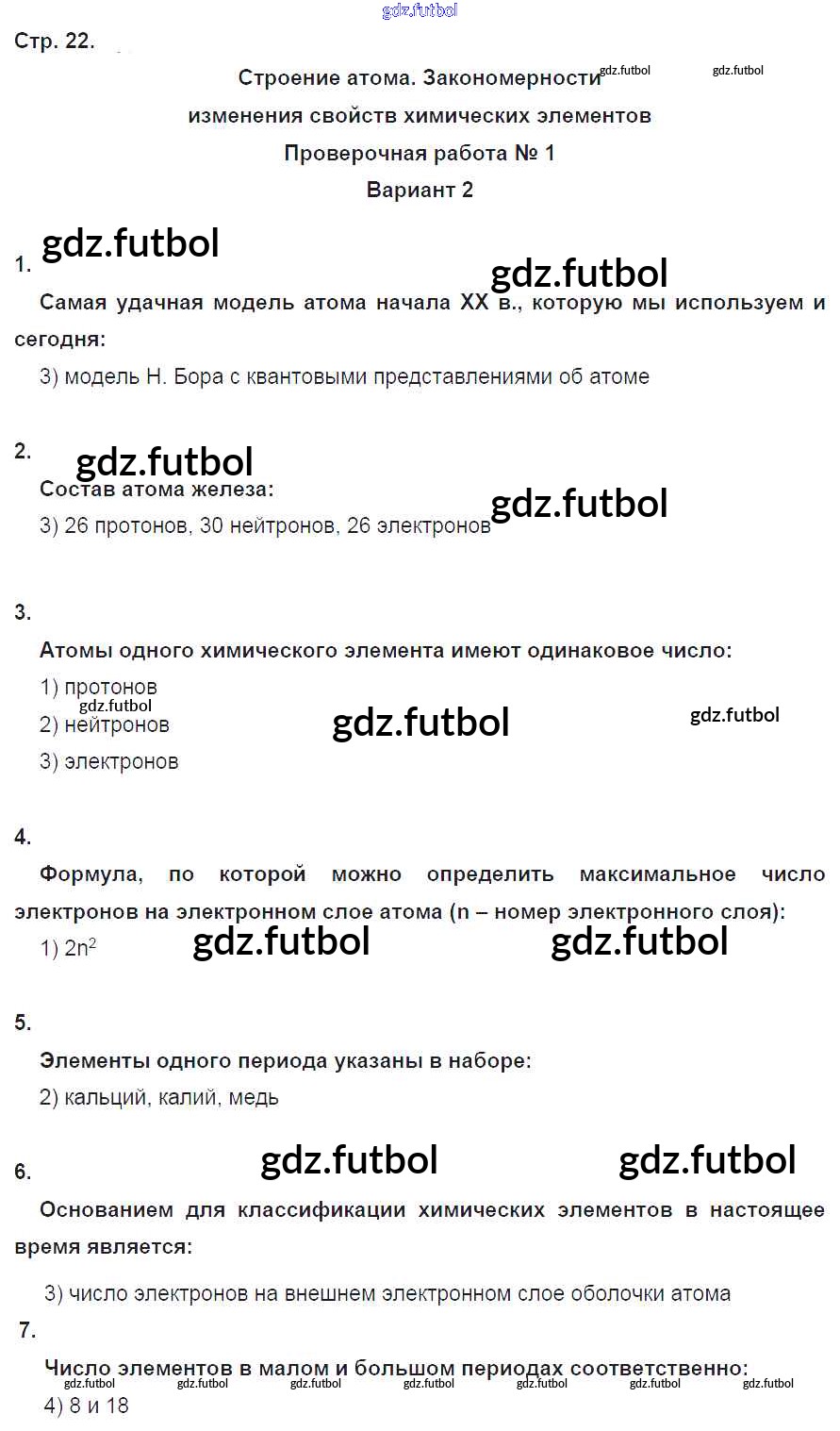 Готовые домашние задания по Химии за 8 класс Бобылева Тетрадь-экзаменатор Сферы 2016 ФГОС - Страницы 22