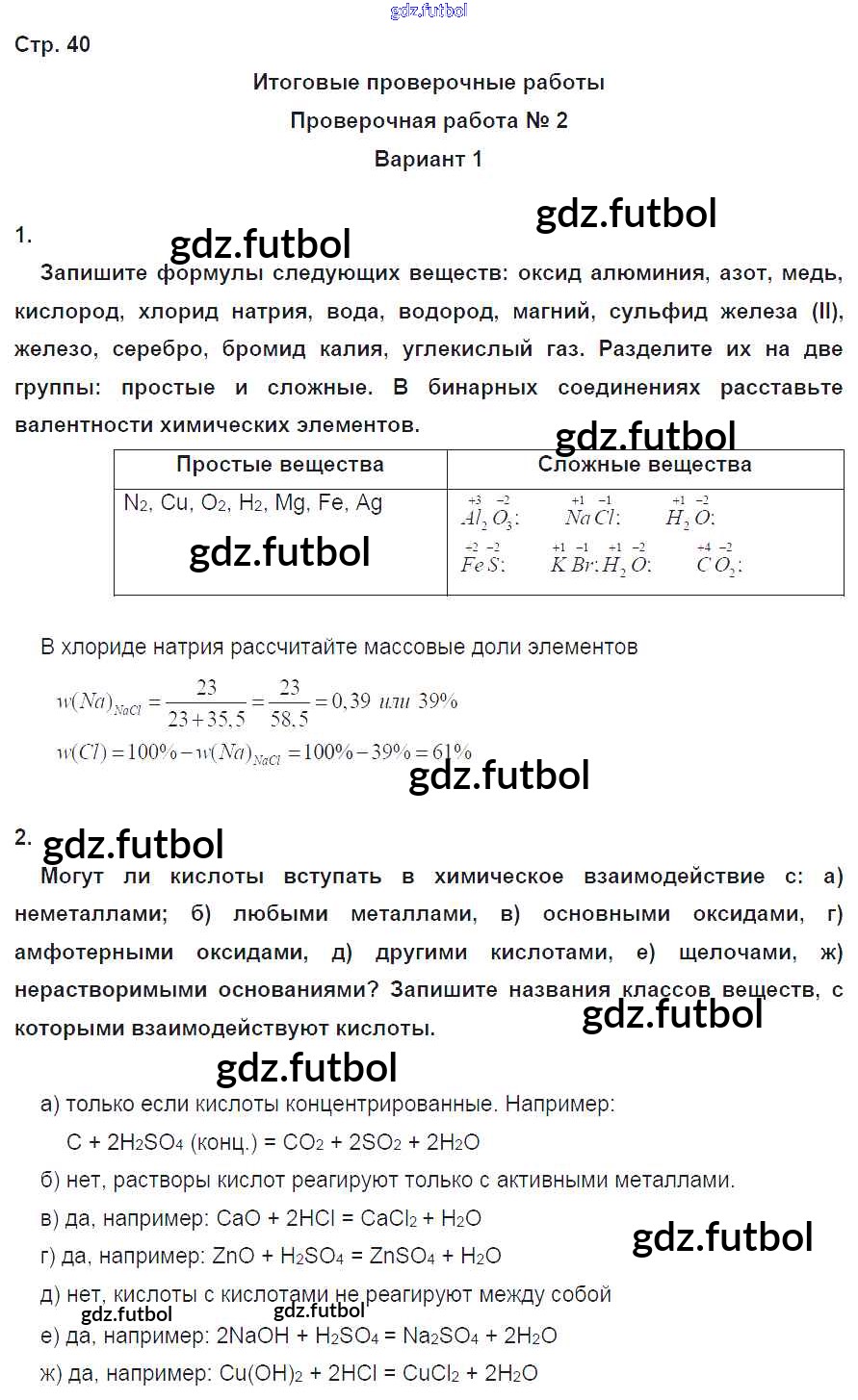 Готовые домашние задания по Химии за 8 класс Бобылева Тетрадь-экзаменатор Сферы 2016 ФГОС - Страницы 40