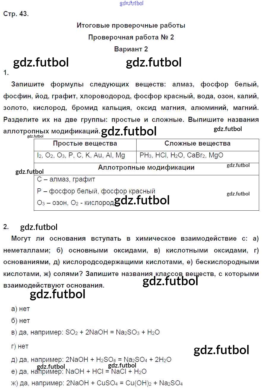 Готовые домашние задания по Химии за 8 класс Бобылева Тетрадь-экзаменатор Сферы 2016 ФГОС - Страницы 43
