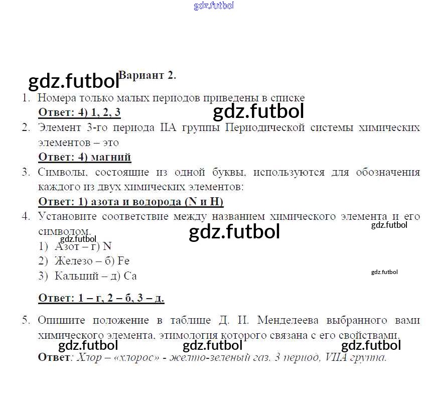 Готовые домашние задания по Химии за 8 класс Габриелян Контрольные работы УМК 2017 ФГОС - ПР-1. Варианты 2