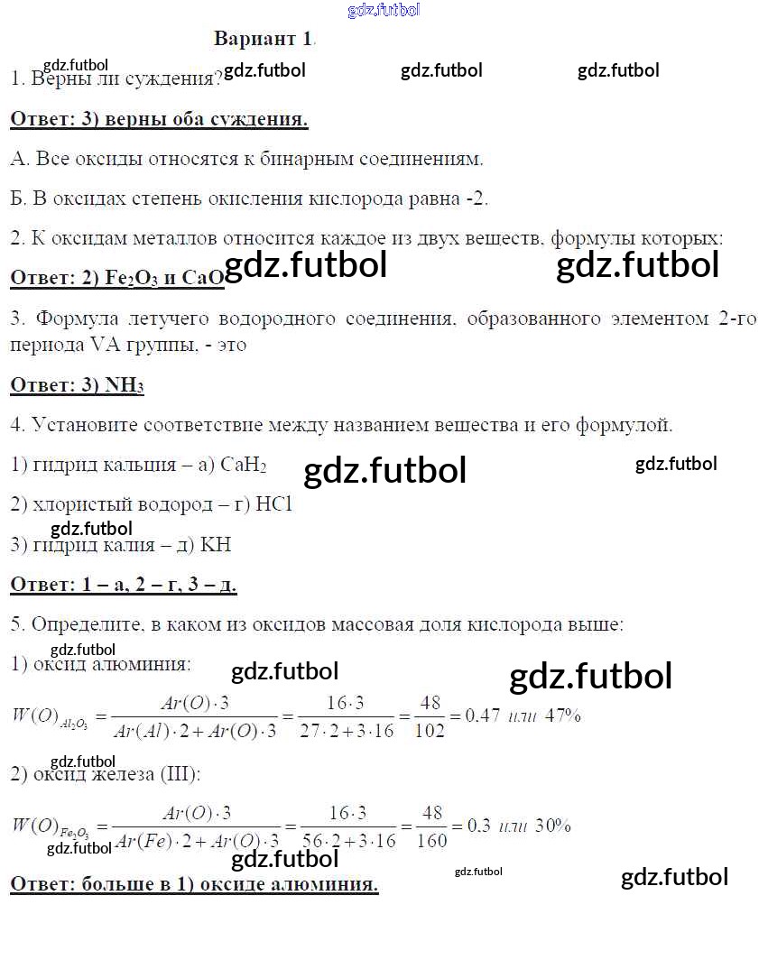 Готовые домашние задания по Химии за 8 класс Габриелян Контрольные работы УМК 2017 ФГОС - ПР-11. Варианты 1
