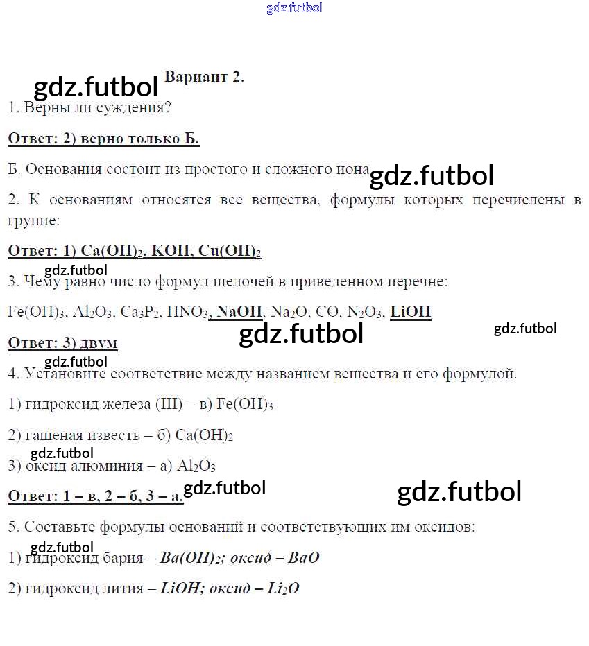 Готовые домашние задания по Химии за 8 класс Габриелян Контрольные работы УМК 2017 ФГОС - ПР-12. Варианты 2
