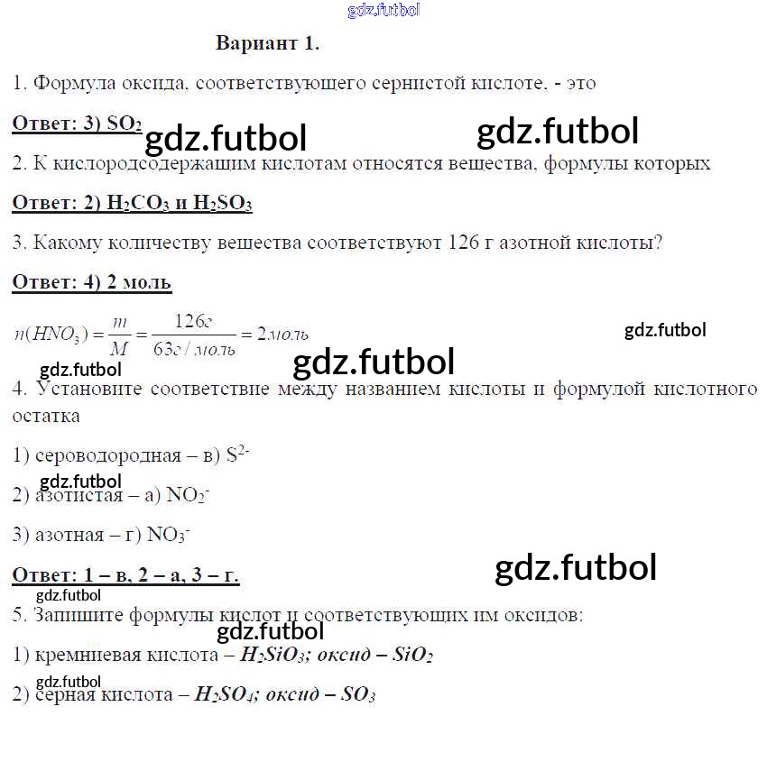 Готовые домашние задания по Химии за 8 класс Габриелян Контрольные работы УМК 2017 ФГОС - ПР-13. Варианты 1