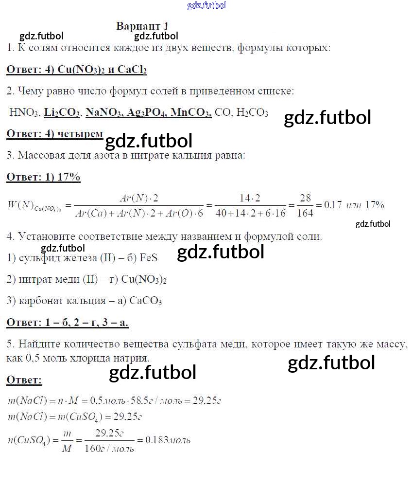 Готовые домашние задания по Химии за 8 класс Габриелян Контрольные работы УМК 2017 ФГОС - ПР-14. Варианты 1